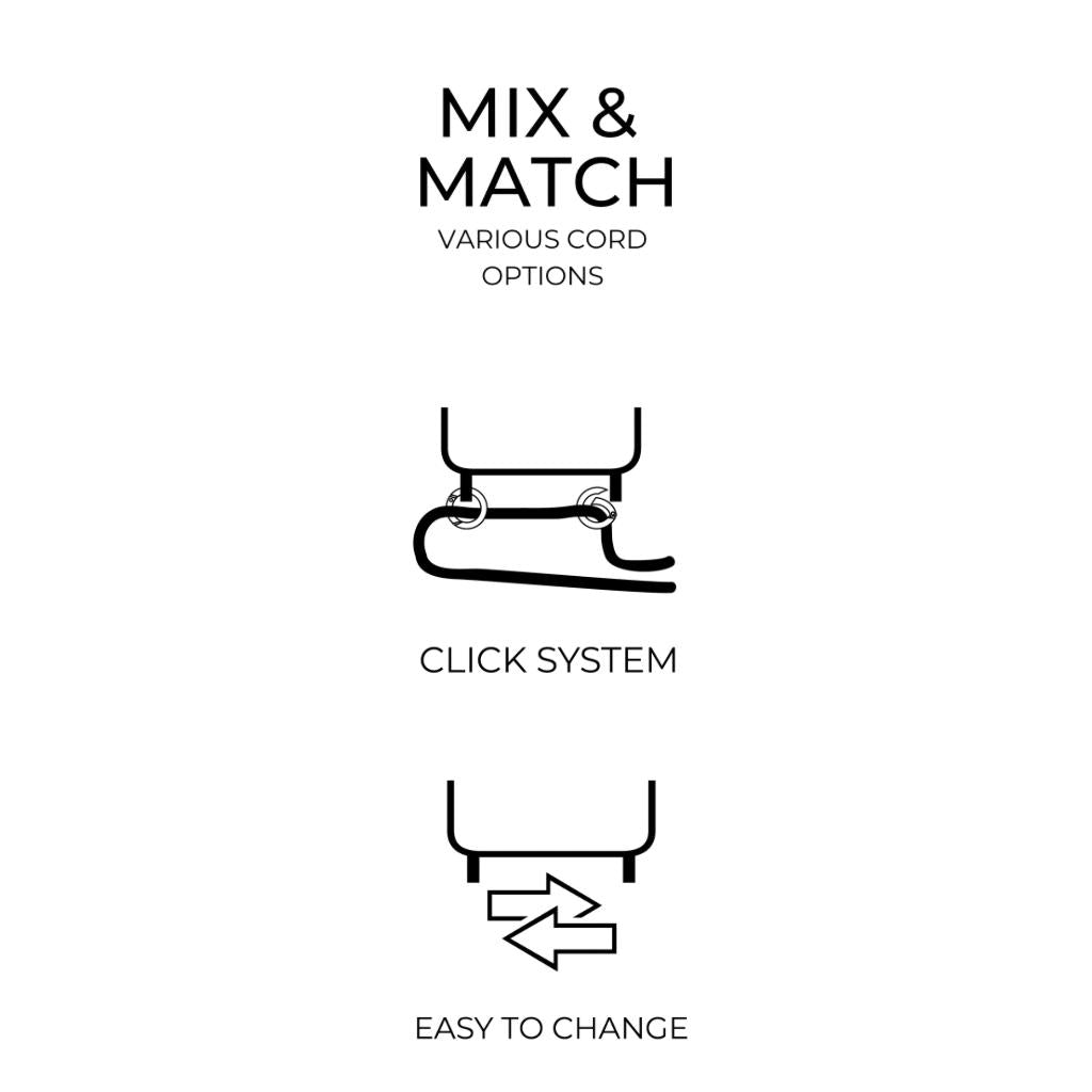Using our simple but secure EMSY carabiner click ring system, different cords can be attached to your EMSY phone case. Can’t decide between our range of cords? Get an additional one and mix and match!