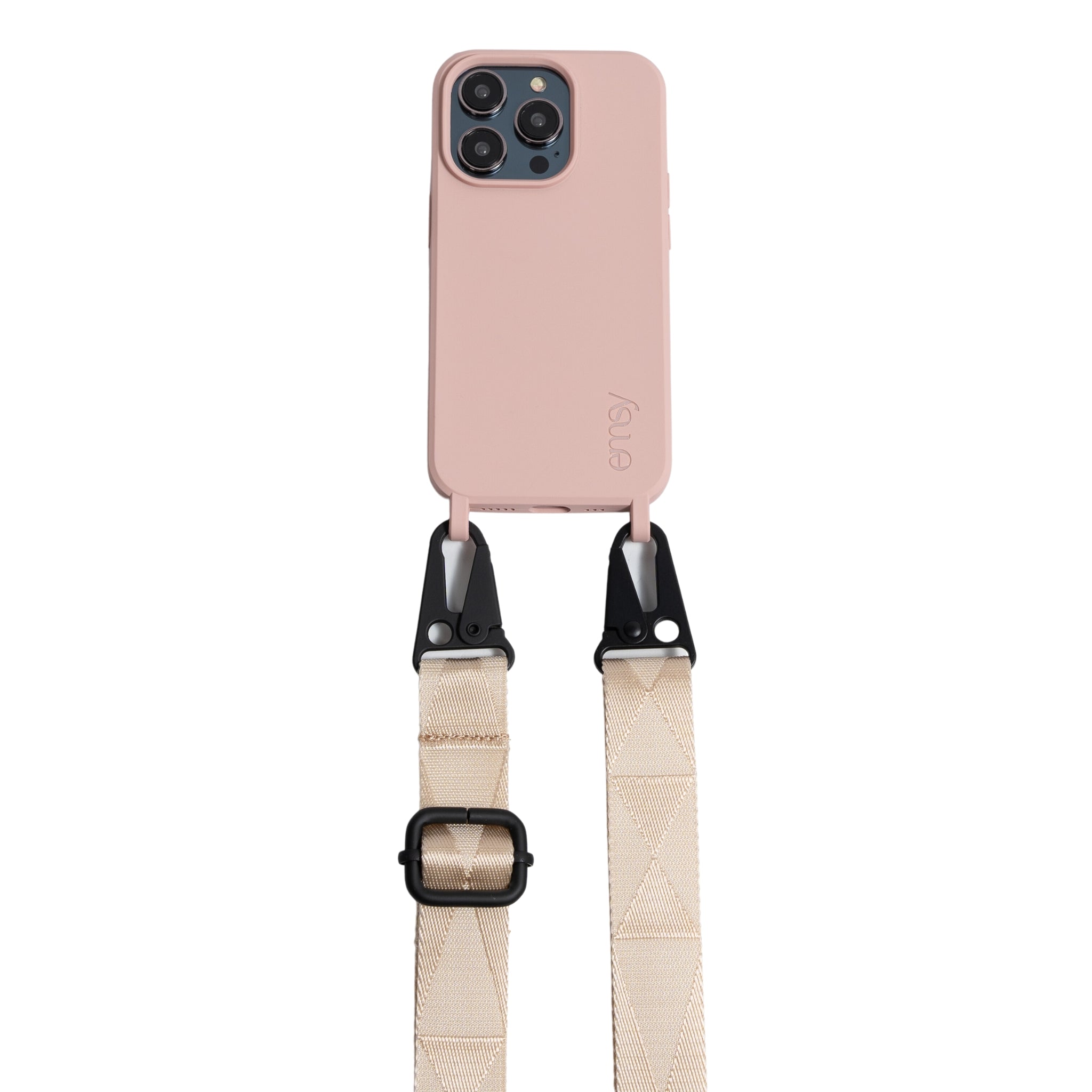 Choose a luxury cord from our vast range. The pink EMSY case is a match for many of the cords available on our website. Our cords attach to the integrated loops on the case with a simple but secure carabiner click system. This enables you to use the phone case with no cord if required.
