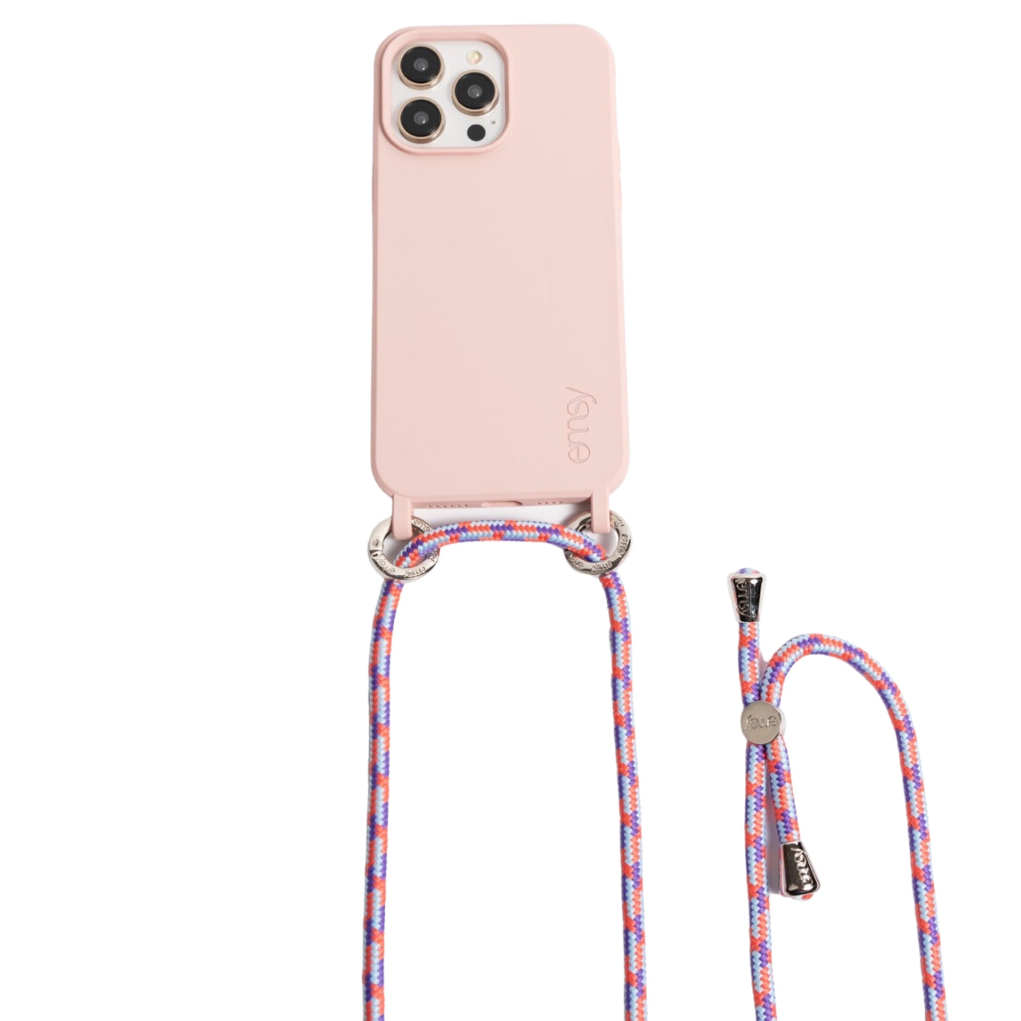 Choose a luxury cord from our vast range. The pink EMSY case is a match for many of the cords available on our website. Our cords attach to the integrated loops on the case with a simple but secure carabiner click system. This enables you to use the phone case with no cord if required.